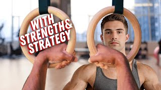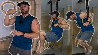 The Ring Muscle Up is a complex upper body exercise that combines a pull-up and a dip in one fluid motion. To perform this exercise, start by hanging from the rings with a false grip, where your wrists are above the rings. Initiate the movement by pulling yourself up explosively, keeping the rings close to your body. As you reach the top of the pull-up, transition by rotating your wrists and pushing your chest over the rings. Finish by pressing down into a dip position, fully extending your arms. Control the descent back to the starting position. This exercise requires significant upper body strength and coordination.