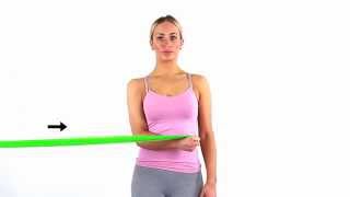 Rotate outward, elbow at side.
